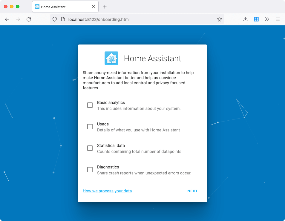 Screenshot of analytics during Home Assistant onboarding