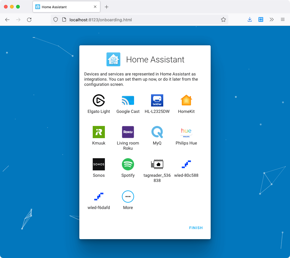 Screenshot of setting up integrations during Home Assistant onboarding