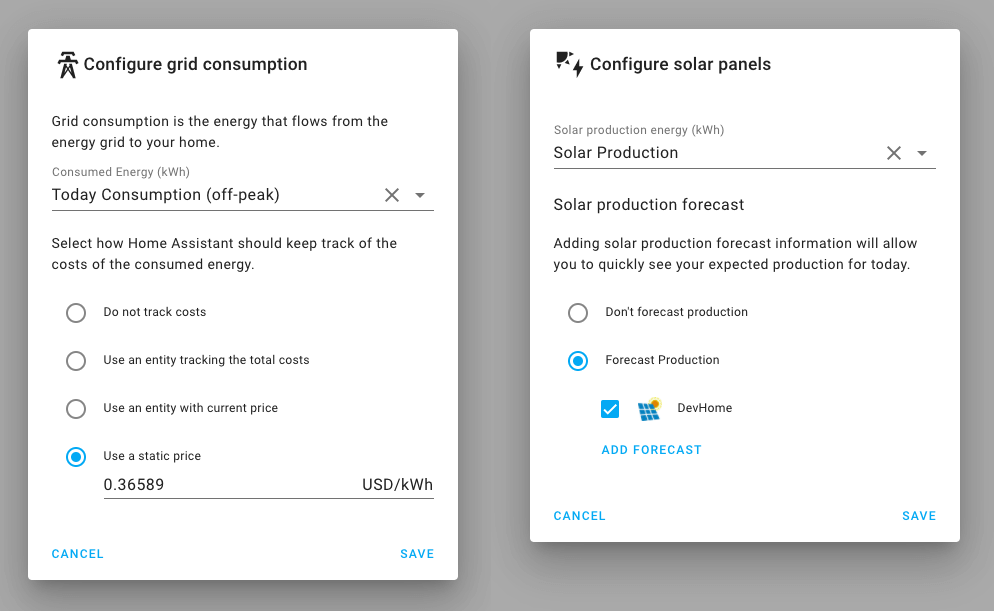 Users can configure their consumption and production and Home Assistant will do the rest. Home Assistant can pull in energy data from any supported hardware such as smart energy meters, inverters, CT clamps, pulse monitors and smart plugs.