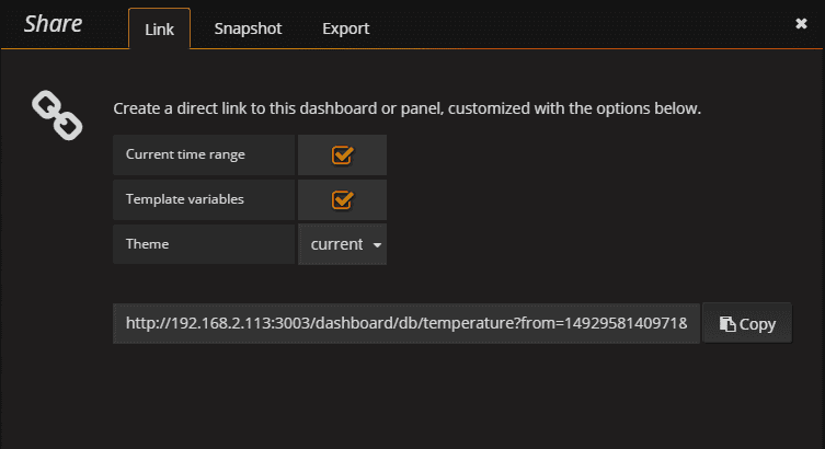 The URL can be obtained by clicking Share Dashboard link on your dashboard: