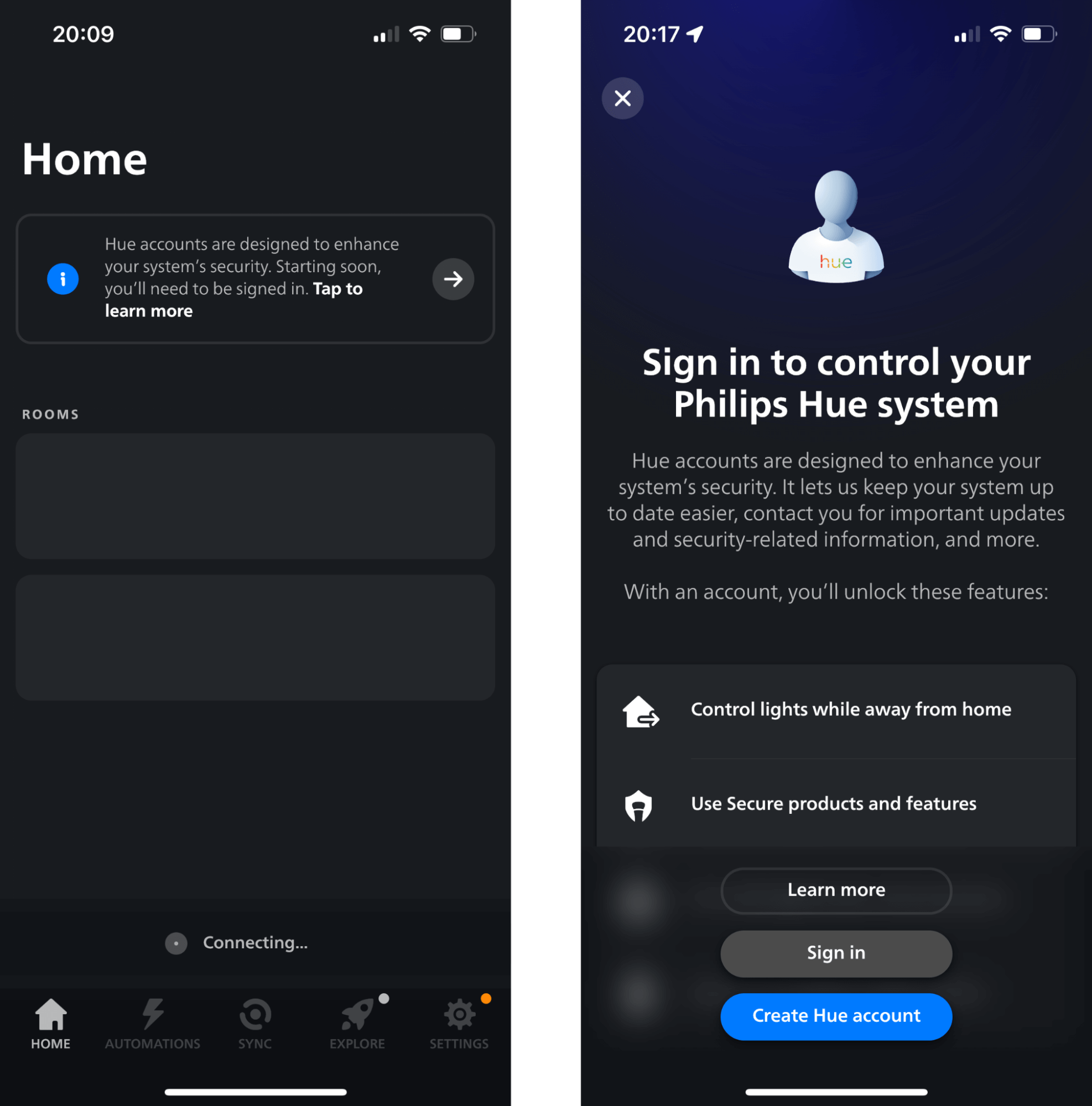 But things are changing, for the worse. When you open the Philips Hue app you will now be prompted with a new message: Starting soon, you’ll need to be signed in.