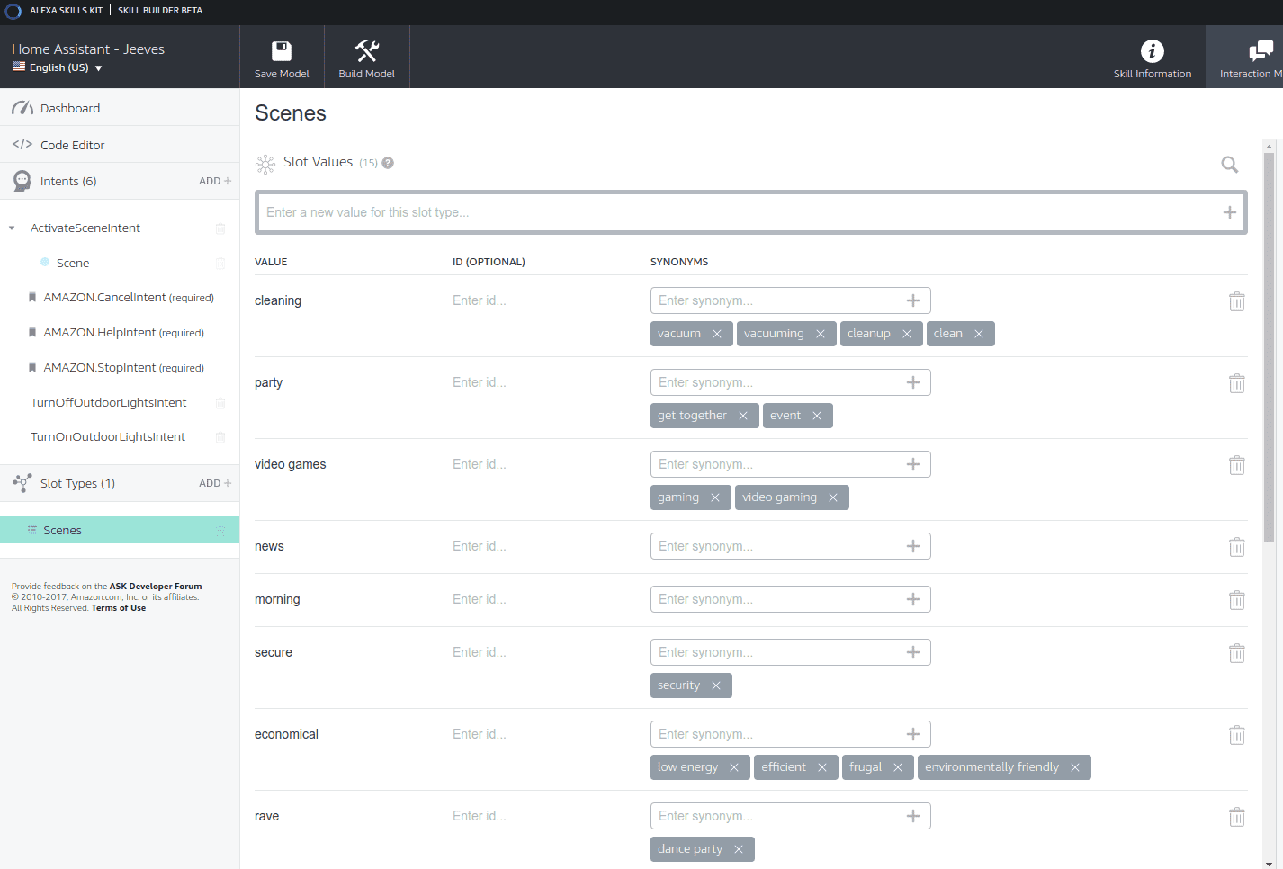- Name: HomeAssistantIntentsSkill (or whatever you want to call this skill)