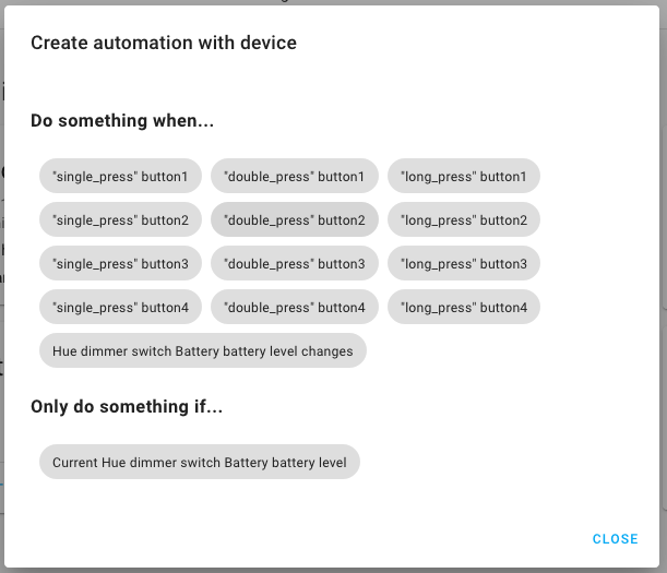 Clicking on one will drop you in to the automation editor with a trigger pre-filled in. If your device supports it you will be able to choose between types of event - like a short press or a long press.
