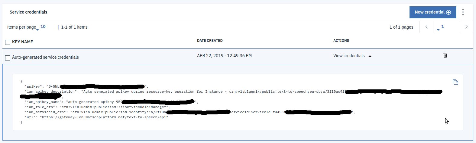 You can get these tokens after you generated the credentials on the IBM Cloud console: