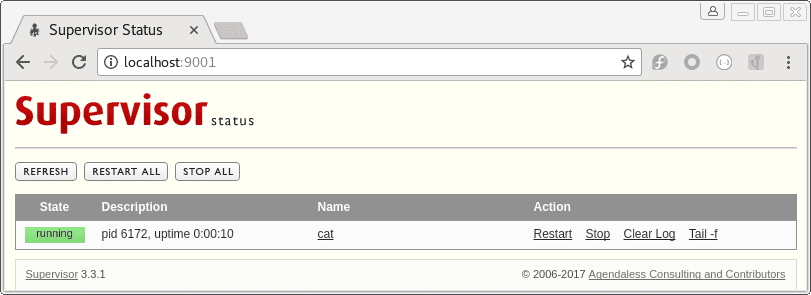 After a restart of supervisord you should be able to access the web interface. If needed then this could be added as an webpage dashboard.